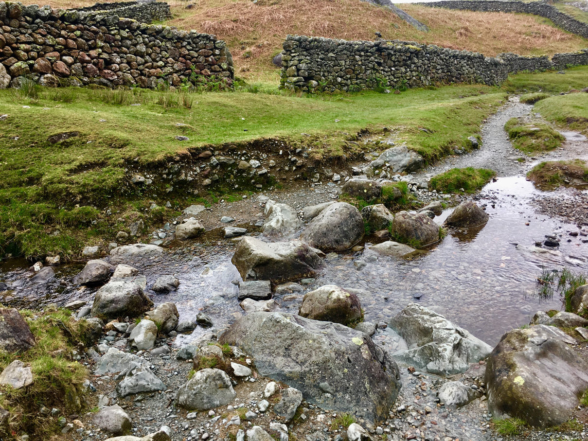 The Far Easedale Gill had to be crossed on rocks such as above so many times the count is not important. Stopped trying to keep the boots out of the stream - just began stepping through.